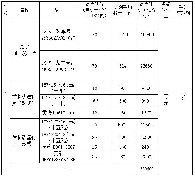 競爭性談判公告 鞍山市交通運輸集團有限公司對“制動器襯片項目”(招標編號:AJY2019WZ002)進行國內(nèi)公開采購,預(yù)計年采購額33萬元左右,采購方式為競爭性談判,歡迎國內(nèi)合格的供應(yīng)商參加本次公開采購活動。 一、采購內(nèi)容及項目要求 1.采購內(nèi)容